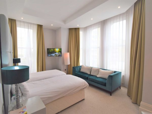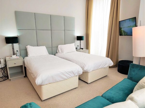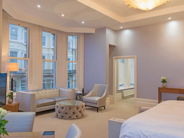 The Executive rooms offer a gorgeous and bright setting for your stay. These rooms are approximately 30sqm (323sqft) and combine the height of elegance and comfortable luxury. These rooms are configured as a Twin or a Super King and can accommodate an additional single bed and even a cot !! There is a choice between a marble bathroom or a marble shower room and these rooms are found on the side of the building (with a partial sea view) or at the front with a full sea view over looking the Victorian sea front.